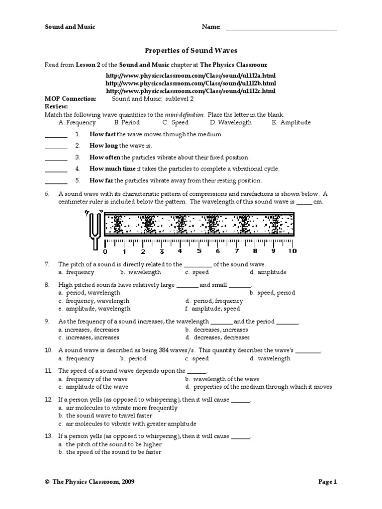 Waves And Sound Worksheet Answer Key - Sound Waves Worksheet Answers : The amplitude of a sound's waves determines the sound's loudness.. Frequency is a measure of how many waves pass a point in a certain amount of time. Set up the stations as described in the materials list section. When sighting along such a line, light from the object reflects off the mirror according to the law of reflection and travels to the person's eye. The medium through which sound. The higher the frequency, the closer the waves are together and the greater the energy carried by the waves will be.
